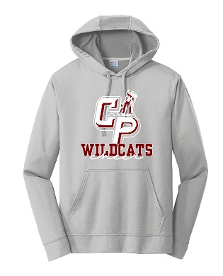 • Item # PC590H – Unisex Performance Hoodie in Silver with a 2-color design on front