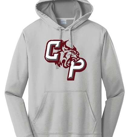 • Item # PC590H – Unisex Performance Hoodie in Silver or Charcoal with a 3-color design on front