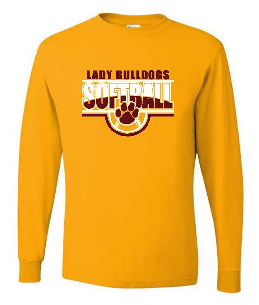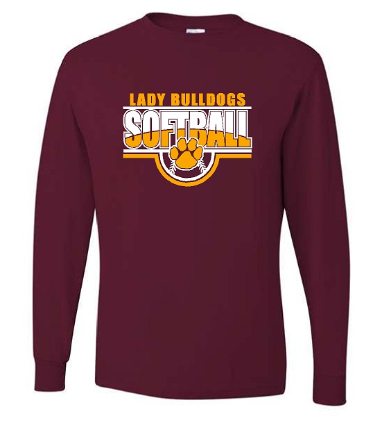 29LS- Unisex Long Sleeve T-shirt in Maroon, Black or Gold with a 2 color front design