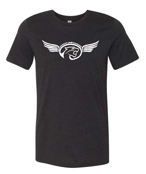 3001 – Unisex t-shirt in Heather Gold, Heather Black or Team Purple with a 1 color front design