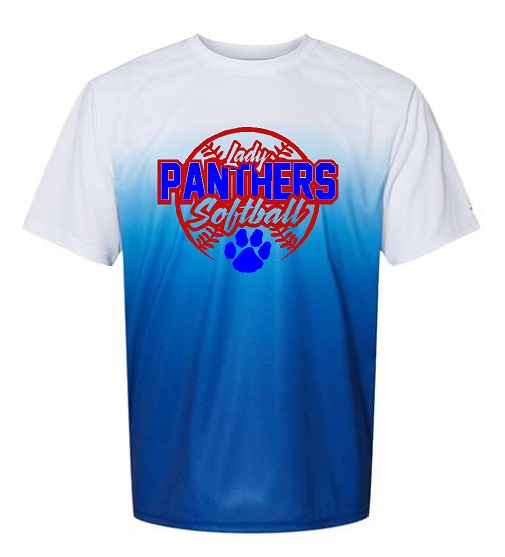 4119 – Unisex Royal Ombre Performance T-shirt with a 2 color front design