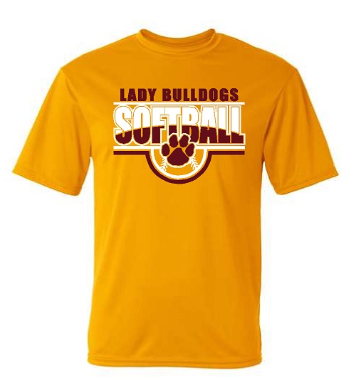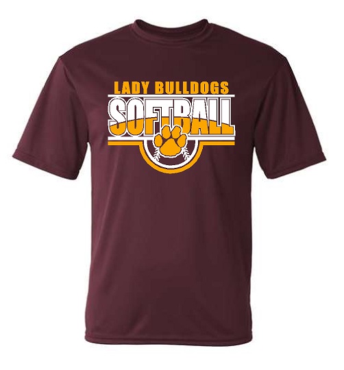 5100- Unisex Performance T-shirt in Maroon, Black or Gold with a 2 color front design