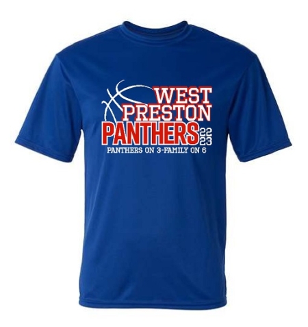 5100- Unisex Performance T-shirt in White, Royal or Silver with a 2 color front design