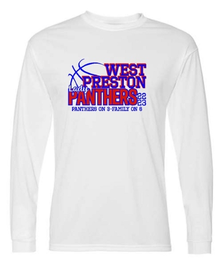 5104- Unisex Performance Long Sleeve T-shirt in White, Royal or Silver with a 2 color front design