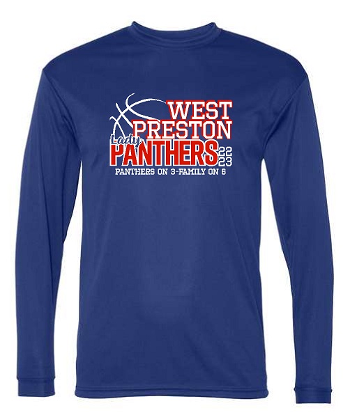 5104- Unisex Performance Long Sleeve T-shirt in White, Royal or Silver with a 2 color front design