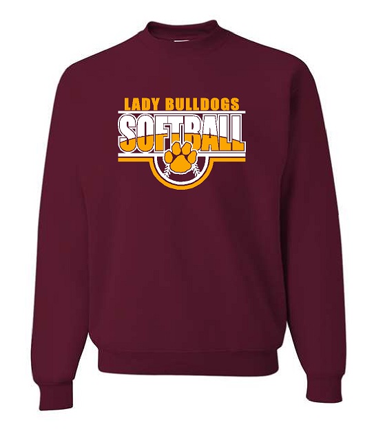 562 – Unisex crew sweatshirt in Maroon or Black with a 2 color front design