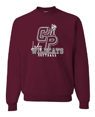 Item # 562 – Unisex Crew Neck Sweatshirt in Maroon or Oxford with a 2 color front design