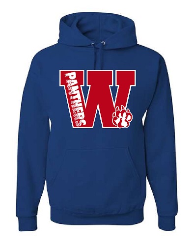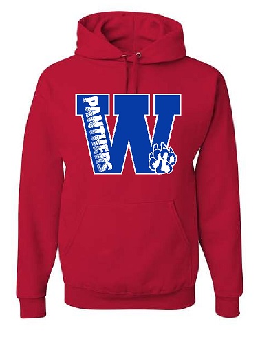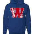996- Unisex Hooded Sweatshirt in Red or Royal with a 2 color front design