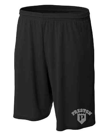 • Item # 1428- Unisex 9″ Shorts in black with a 2 color design