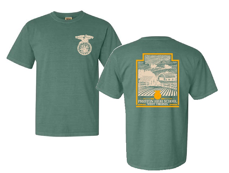 Unisex T-shirt in Light Green with a 1-color front & 2 color back design