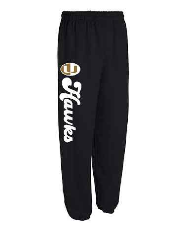 • Item # 974 – Unisex Open Bottom Sweat Pants in Black or Oxford with a 2 color design