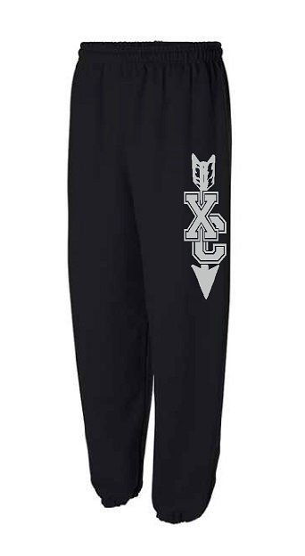 • Item # 974 – Unisex Open Bottom Sweat Pants in Black or Oxford with a 2 color design