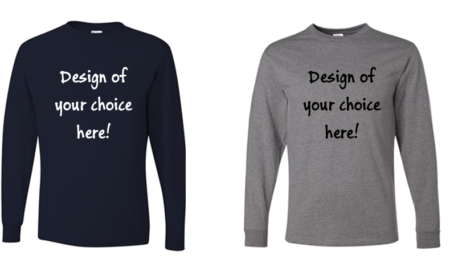 Item #29LS- Unisex Long Sleeve T-shirt in Black or Oxford with a 1 color design of your choice on front