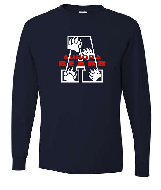 Item # 29LS – Unisex Long Sleeve T-shirt in Black, Red or White with a 2-color design on front