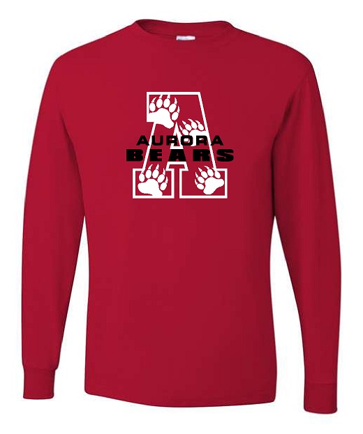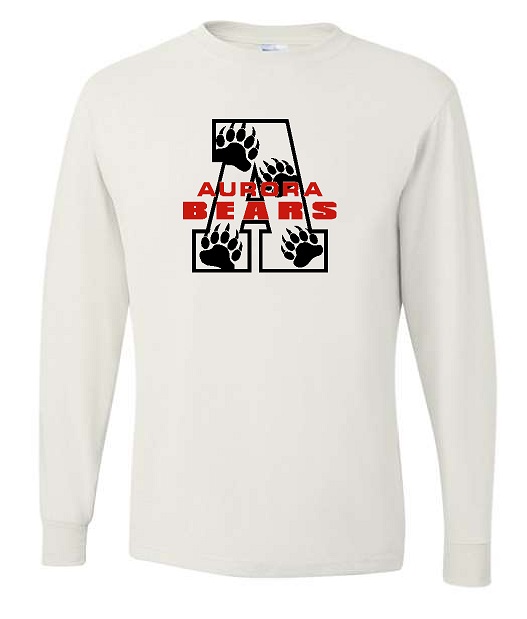 Item # 29LS – Unisex Long Sleeve T-shirt in Black, Red or White with a 2-color design on front