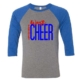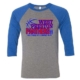 Unisex 3/4 sleeve raglan t-shirt in Royal & Gray with a 1 color front design