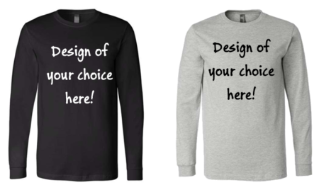Item #3501- Unisex *SOFT* Long Sleeve T-shirt in Black or Gray with a 1 color design of your choice on front