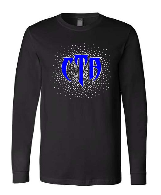 Item #3501G- Unisex Soft Long Sleeve T-shirt in Black with 1 color glitter design + Rhinestones