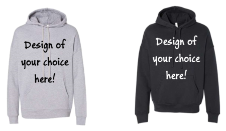 Item #3729 – Unisex *SOFT* Hooded Sweatshirt in Black or Gray with a 1 color design of your choice on front