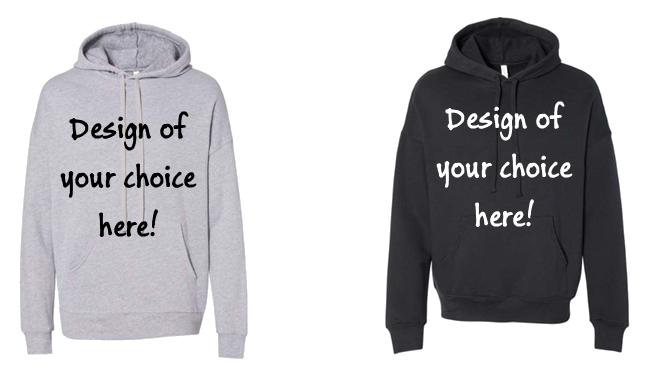 Item #3729 – Unisex *SOFT* Hooded Sweatshirt in Black or Gray with a 1 color design of your choice on front