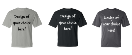 Item #5100- Unisex Performance T-shirt in Black, Silver or Graphite with a 1 color design of your choice on front