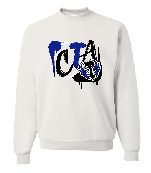 Item #562-GRAF – Unisex Crewneck Sweatshirt in White with a 2 color design on front