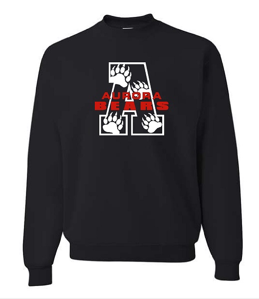 Item # 562 – Unisex crewneck sweatshirt in Black with a 2-color design on front