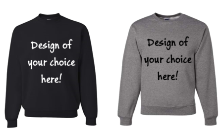Item #562MR- Unisex Crew Sweatshirt in Black or Oxford with a 1 color design of your choice on front