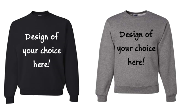 Item #562MR- Unisex Crew Sweatshirt in Black or Oxford with a 1 color design of your choice on front