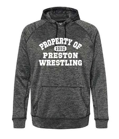 Unisex Performance hoodie in Heather Charcoal with a 1-color front design