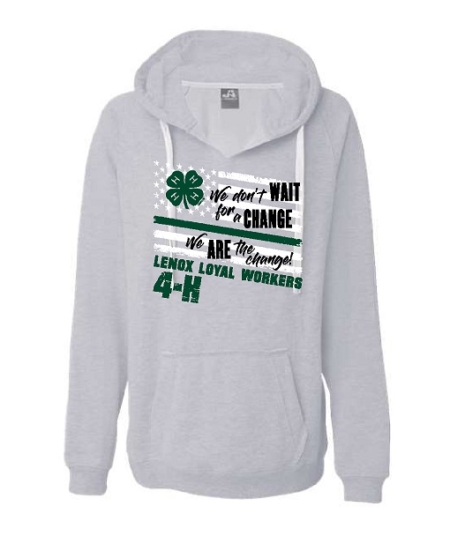 Women’s Open Neck Hoodie in Gray with a 3-color design on front