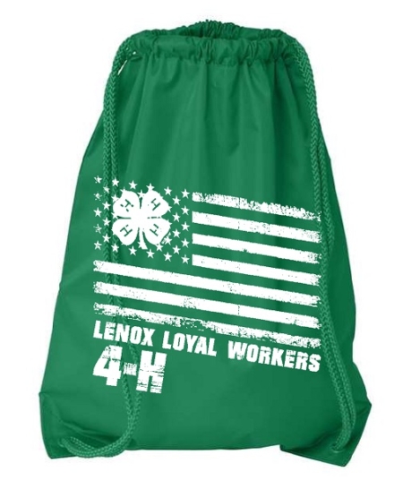 Item #8881 -Drawstring Bag in Kelly Green with 1 color design on front