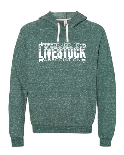 Item # 90MR – Unisex Hoodie in Snow Heather Forest Green with a 1 color design on front