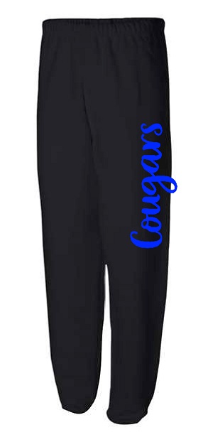 • Item # 974 – Unisex Open Bottom Sweat Pants in Black or Oxford with a 2 color design