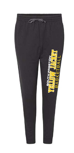 Item #975 – Unisex Jogger sweatpants in Black or Athletic Heather with a 2 color front design