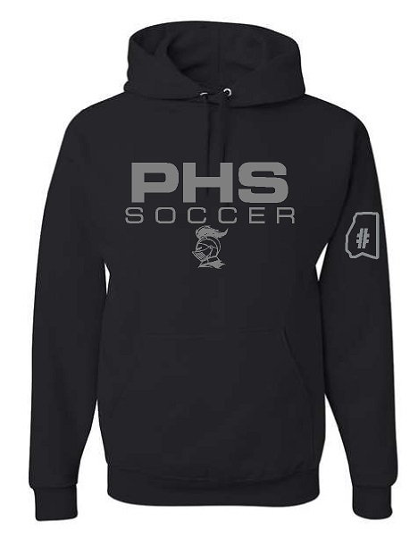 • Item # 996 – Unisex Hoodie in Black or Oxford with a 2 color design