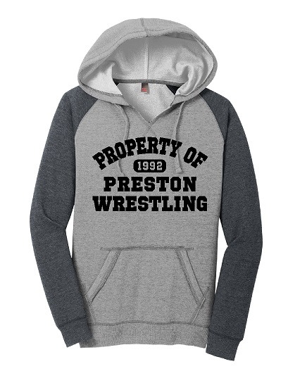 Women’s hoodie in Heather & Charcoal with a 1-color front design