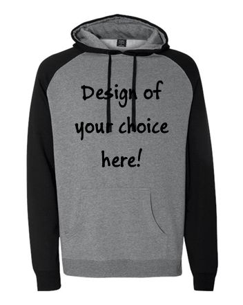 Item #IND40RP – Unisex Hoodie in Black/Gray with a 1 color design of your choice on front