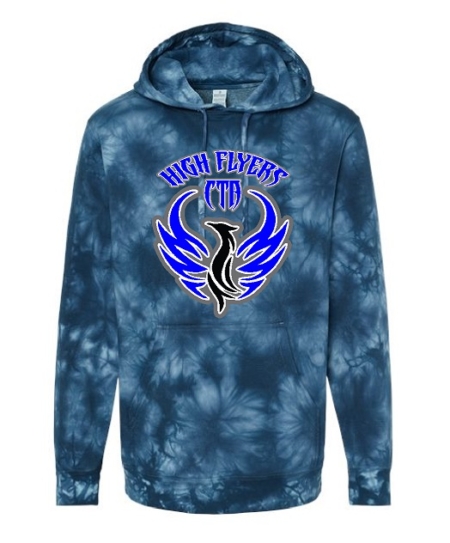 Item #PRM4500TD- Unisex Tie-Dye Hoodie in Navy with a 4 color front design