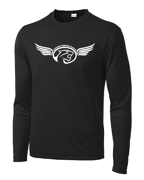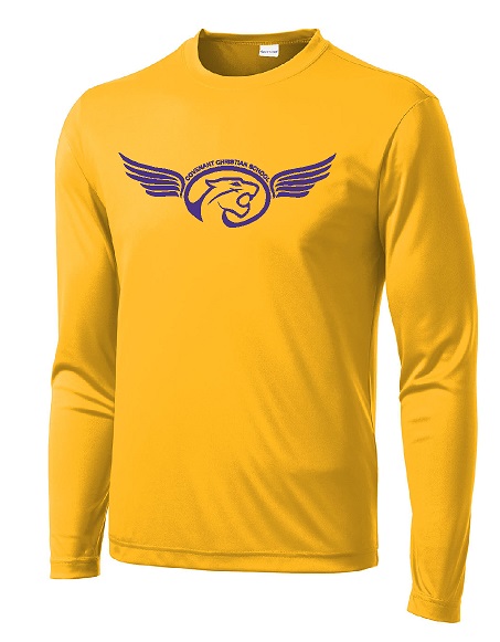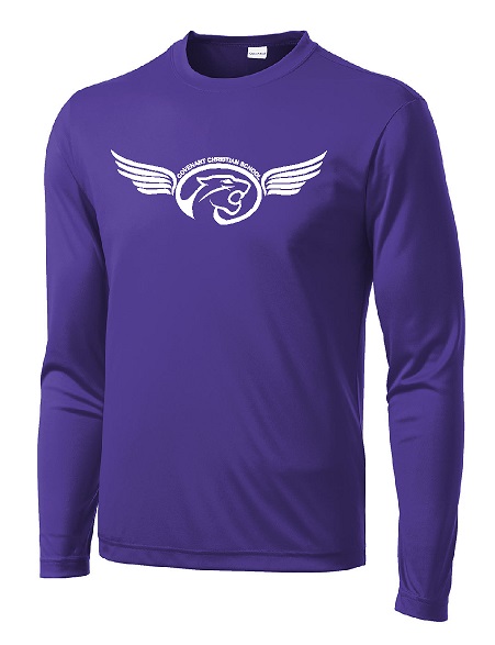 ST350- Unisex Performance Long Sleeve T-shirt in Black, Purple or Gold with a 1 color front design