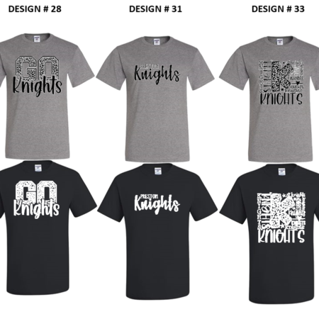 Item #29MR- Unisex T-shirt in Black or Oxford with a 1 color design of your choice on front