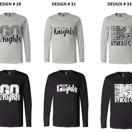 Item #29LS- Unisex Long Sleeve T-shirt in Black or Oxford with a 1 color design of your choice on front