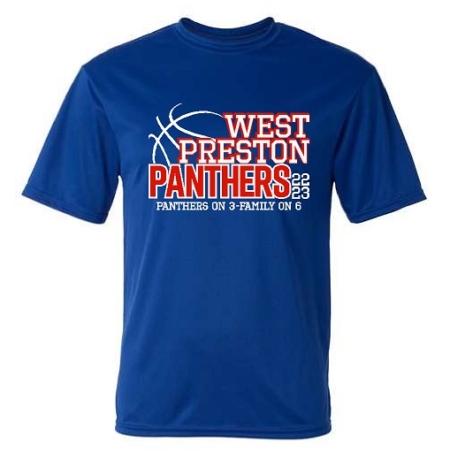 5100- Unisex Performance T-shirt in White, Royal or Silver with a 2 color front design