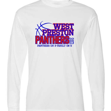 5104- Unisex Performance Long Sleeve T-shirt in White, Royal or Silver with a 2 color front design