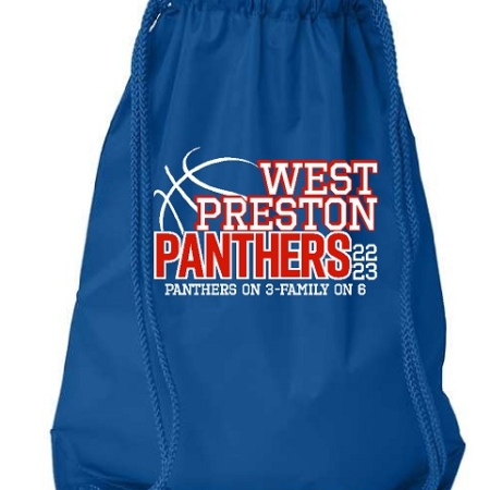Item #8881 – Drawstring Bag in Royal or White with 2 color design on front