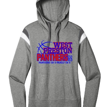 Item # LNEA108 – Women’s Hooded Sweatshirt in Royal or Gray Heather with a 2 color design on front